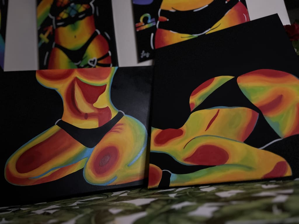The Thermal Body Collection was born from artist Lay Simone’s fascination with energy and emotion. She wanted to paint what cannot be seen but is always felt. Her work captures warmth as spirit, motion as memory, and color as truth.