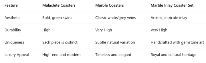🔍 Malachite vs. Marble Coasters – Which One to Choose?