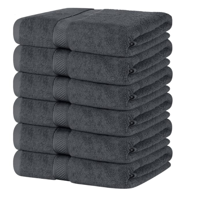 3.Overview of Simpli-Magic Cotton Bath Towels, 25”x50”, Gray, 6 Pack