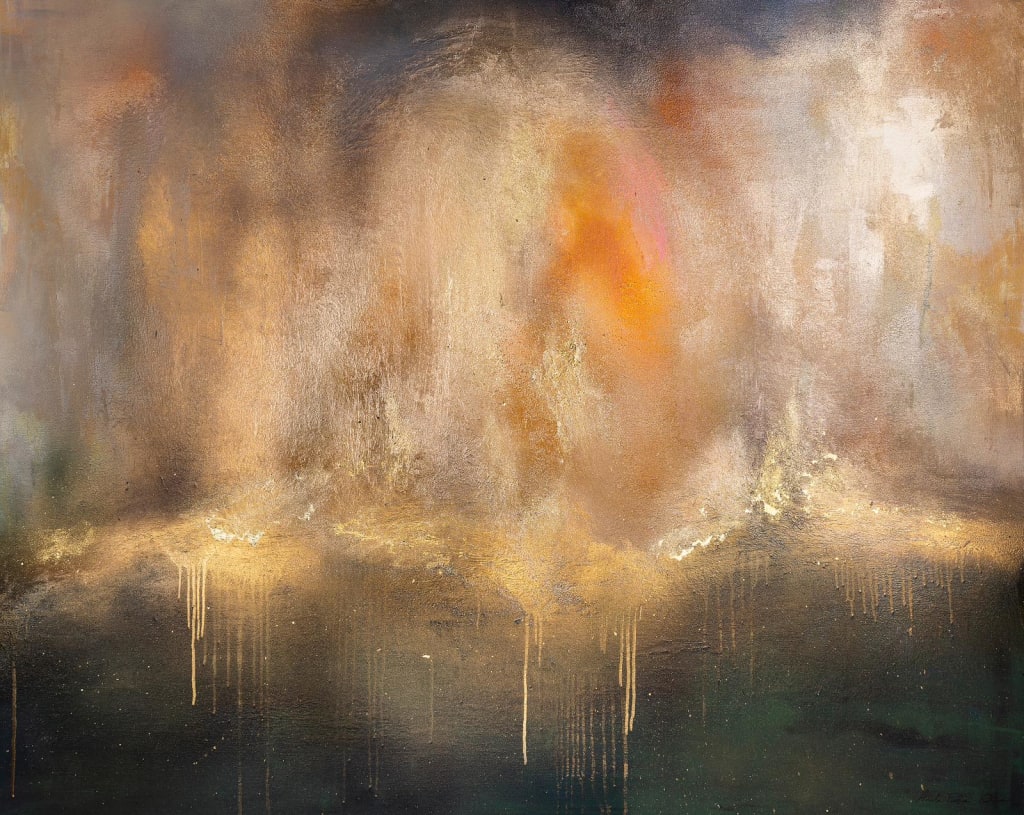 Purina-Purite's artistic style, coined "Collisive Abstraction," weaves intricate patterns, bold colors, and abstract forms. Each stroke draws palpable inspiration from nature, architecture, and the human form. "Unseen Landscape" isn't just a painting; it's an extraordinary metamorphosis of ordinary materials into a work of art radiating elegance, sophistication, and artistic brilliance.