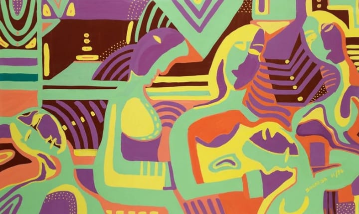 Verdadism is instantly recognizable through its hard-edge abstraction, vivid color schemes, and geometric forms. Drawing from influences such as Abstract Expressionism, Fauvism, Surrealism, and West African sculpture, Martinez’s figures are flat yet deeply expressive, embodying emotions through their contours and color contrasts rather than through traditional realism.