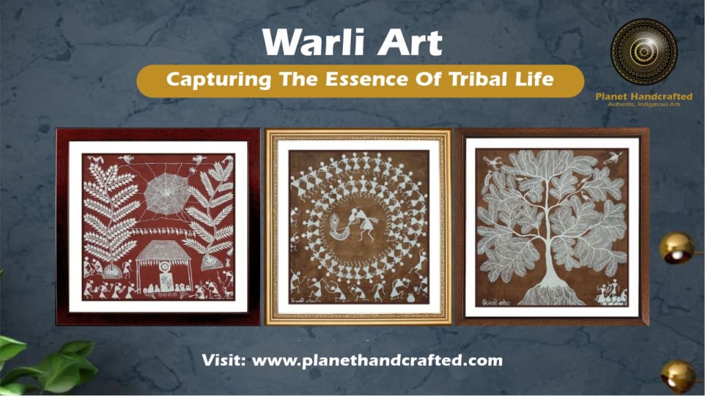 Warli art, a tribal way of life known for its simplicity and minimalism, captures the essence of tribal life through its unique style and symbolism. Their extremely rudimentary wall paintings use basic graphic symbols such as a circle, a triangle, and a square. Their pictures were monosyllabic. The circle & triangle come from their simple observation and understanding of nature, the circle represents the sun and the moon, and the triangle represents mountains and pointed trees. Only the square comes with a variant logic and is a human invention that indicates a sacred piece of land. Let's delve into the world of Warli art, exploring its origins, techniques, and the stories it tells with the words of PlanetHandcrafted.