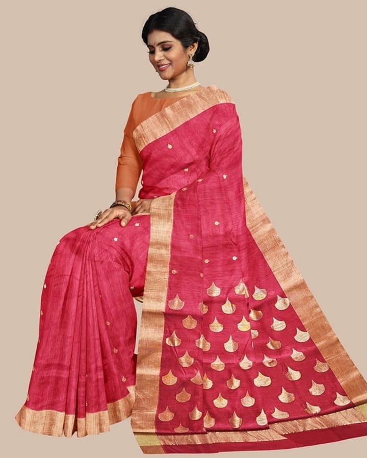 Examine the Weaving: The presence of imperfections within the weave implies that the saree is handmade.Machine-constructed sarees are usually more uniform in the pattern.