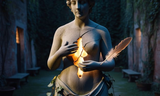 They say the statue in the old courtyard was sculpted by a man who had once loved a goddess. Not just any goddess, but a spirit of fire—brilliant, wild, and wholly untamable. The statue was his offering, a way to keep her close, even after her light had disappeared from the world.