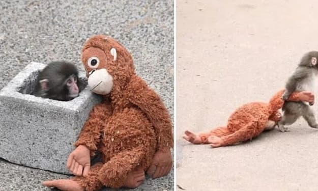 How an Abandoned, Plush-Loving Macaque Became the Most Beloved Monkey on the Internet. AI-Generated.