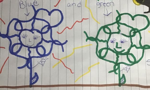 I love flowers so beautiful and gorgeous but this one flower she can rap her name was blue. one day she was up on stage perform, sang, and dance, everybody was happy for her. Finally this other girl named green she perform to. blue and green had both battle with each other. Finally the battle was over they both won then blue said to green do you want to go out for ice cream green said yes. So first green and blue got in the car and blue drove to the ice cream place finally and both of them ate ice cream. Blue and green was both done with the ice cream. Green said i want to go get my nails done blue said lets go. Second green and blue got in the car again and blue drove to the nail shop. So finally blue and green both drove to the nail shop ready to get nails done at the nail salon. Green said to blue i like your nails both of them are so pretty and pink blue said thank you i like your nails to green both of them are shiny and sparkly. Next blue and green both got in the car after finally had the nails done. Green and blue both was so happy that both nails was done and over with. Finally blue said to green lets go to the club and have fun. Finally green said yeah lets go blue is still on the road so blue and green finally arrived at the club. Green and blue finally got out the car and went inside the club green and blue started to dance and have fun at the party. Finally a boy came up to blue and said are you a rapper blue said yeah me and my friend named green are both rappers. The boy said get up on stage so blue and green got up on the stage and started to rap on stage. finally green and blue started to dance people was so amaze everybody was proud of them the crowd was so loud for blue and green up on the stage. Even the boy was happy for them so finally when blue and green was done with the stage a professional guy came up to them and said you girls got talent and Potential in yall got what it takes to become famous and rewarded them with alot of money and paid for them free studio session as well that was so nice of him. Next blue and green was so happy. and so excited blue said to green we going to be superstars and super famous yah green said yes we are with her excitement voice yah. So blue and green got in the car so excited and so happy and went home but blue wanted to go get her hair done so both of them went to the hair salon together and finally got it done. while blue and green finally got to the place the people at the hair salon ask them did you want some food or something to drink green and blue said yeah. Finally green said to blue i want to buy a house. Blue said what kind of house do you want. Green said just a bigger house with 3 bedrooms 2 bathrooms and a makeup room and finally a kitchen with a basement. Blue said ok lets go search for houses green said ok lets go have some fun yeah green said to blue. So green and blue both got in the car blue drove to where the houses was at since green was so rich blue said to green i like this house so blue and green both got out the car and went inside the house. Blue said this house looks very nice and big green said yes this does look nice im finna buy this whole house up. So green paid with her own money. Green was very happy when so bought this nice house and everything blue was happy for her to. So blue and green both got in the car and drove home. The end