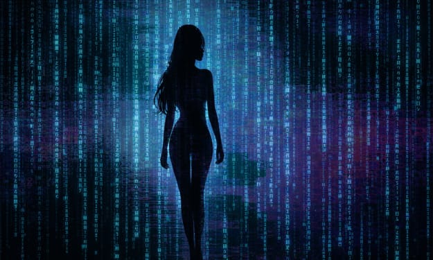 2086 — Tokiton, Eurasia. I open my eyes for the very first time. I take a look around. I can assume I am at a laboratory — pale white walls, big screens emitting blue light while displaying codes all over, at least five holo-boards with calculations written on them. And many, many silvery robot arms like a spider queen hovering above my face. What's a spider?