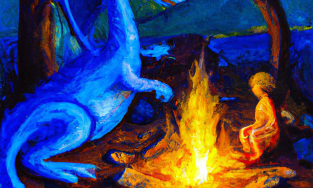 It was late in the afternoon but the sun had not yet managed to penetrate through the dense low hanging clouds. Tall oaks bereft of leaves bordered the edge of the woods, their long branches reaching out towards the nearby human settlements as if the forest were trying to reclaim its rightful land. Deeper in the woods in a small clearing, leaves blanketed the forest floor, their colors muted by weeks of decay, the perfect bedding for a weary dragon. Nevi hummed in satisfaction as she lowered her enormous frame to the ground, and curled her 8-foot-long tail around her, looking remarkably like a sleeping cat, though one would have to be very foolish to make that comparison within earshot of her. Dragons are very proud creatures after all. She enjoyed the dreary weather as it made the humans far less likely to wander this deep into the woods. Humans were bothersome and foolish. Nevi settled further into the ground taking in the soothing sounds of the woods; wind rustling through the leaves, a soft whimpering, the trickle of a nearby creek. A whimpering. That wasn’t right. She quickly scanned through her memory of woodland creatures but none of them sounded like that except for… humans. She growled in frustration, weighing her options. Fly off or scare the humans away. A few humans were no match for her but if they were armed, they could be a nuisance. On the other hand, she was very reluctant to give up this clearing, she was tired and wasn’t likely to find another place as nice as this to bed. Nevi broke off her growl and focused, listening harder to all the sounds around her, humans could try and be stealthy but their loud clumsy heartbeats always gave them away. In the direction of the whimpering, she heard a lone rapid heartbeat, the unmistakable tempo of a young human. A very young human. It was a cold day and would be an even colder night. This human would not last long without care. What was a child doing alone this deep in the forest? Nevi had no love for humans but when you are as intelligent as a dragon and have lived for as long as a dragon you are not often surprised and so eventually her curiosity won out. She rose slowly making her way towards the child, pausing and listening with each footstep. The whimpering had stopped but the rapid heartbeat was an easy guide. After 10minutes or so of carefully weaving through the trees she spotted a pile of cloth curled at the base of a large oak, the gentle rise and fall suggesting an uneasy slumber. She stayed hidden in the shadows of the trees watching and waiting. There were no signs of a camp or of any other humans but surely, someone must be returning for the child. As she waited the shadows on the trees grew longer and the temperature steadily dropped but still no humans came. Nevi tried to tell herself she didn’t care, humans were of no concern to her, but there was an unmistakable knot in her stomach that tightened with every passing minute. Dragons could be comfortable sleeping in a snowdrift but this child wouldn’t last much longer out here. With a frustrated sigh she slowly approached the child, her large head blocking out what remaining light there was. The child shivered, pulling their thin cloak closer to them but they did not wake. Nevi lowered her head, nudging the child gently with her nose, still they did not wake. She began to grow alarmed. Had she waited too long? She nudged again, less gently this time and the cloak fell from the child’s face. She hissed, pulling back in surprise, it was a young human boy, even younger than she had expected, barely two years of age. As she took this in, the young boy slowly awoke, his face full of confusion and his eyes hazy. She braced herself for the piercing wails she associated with human children but the boy remained silent and still except for the occasional shiver. Nevi sighed again, wondering what to do. The boy tensed in surprise as her warm breath rippled his thick auburn locks then he shut his eyes and smiled. Not many people smiled when they were face to face with a dragon of Nevi’s size. The boy must have been very cold. Nevi glanced around finding a pile of twigs and blew out a restrained flame, just enough to light the damp kindling. She looked back, fully expecting the boy to be cowering in fear but he was still again and appeared to be listening carefully. After a moment he rose and walked slowly towards the sounds of the crackling fire, reaching his hands out towards its warmth. Satisfied, Nevi launched herself into the air flying in low loops, searching for nearby human encampments. In the dark lighting her keen eyes spotted several campfires throughout the woods but none were close enough. The boy was very lost. Too lost. He couldn’t have wandered this far on his own. Human cruelty never ceased to disgust her. After a few more loops she headed back toward her makeshift camp, the child was warm now but the woods held many more dangers than the cold. She landed in her clearing then made her way through the woods on foot to the small campfire. The boy stiffened as she approached and turned his head to listen, but not his eyes. It was dark but most humans would still try in vain to see. This child was looking only with his ears. Suddenly understanding, Nevi settled her head into the ground and made a low humming noise. The boy listened closely then rose, hesitantly approaching her. As he got closer, he reached out his hand gasping in shock as he touched her warm scales. She hummed deeper so he could feel the vibration in his hand and he laughed in surprise, a strange pleasant sound, so unlike the harsh humorless laughs she had heard from humans before. This sound was full of joy. He slowly moved up closer to her face, using his hands as a guide pausing only when he reached her mouth. Nevi chuckled, a low hearty sound and the boy stood very still. Then he resumed his exploration coming face to face with her, his hands resting on her snout. He smiled a t