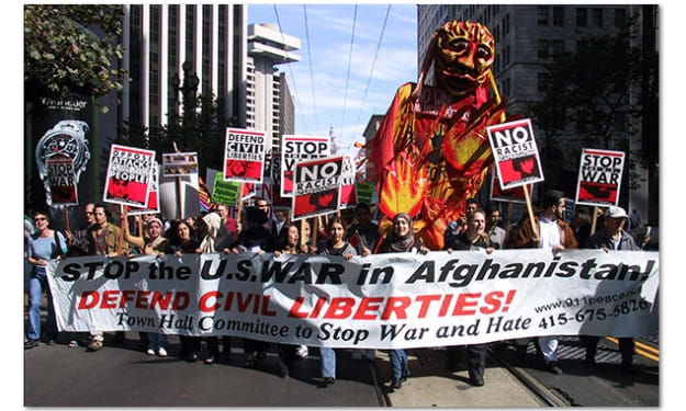 On the morning of September 11, 2001, I was among a small group of U.S. citizens who sat on milk crates or stood holding signs, across from the U.S. Mission to the United Nations in Manhattan. We had been fasting from solid foods for a month, calling for an end to brutal economic warfare waged against Iraq through imposition of U.N. sanctions. Each Friday of our fast, we approached the entrance to the U.S. Mission to the United Nations carrying lentils and rice, asking the U.S. officials to break our fast with us, asking them to hear our reports, gathered after visiting destitute Iraqi hospitals and homes. On four successive Friday afternoons, New York police handcuffed us and took us to jail.