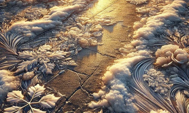 Just enough snow fall creates rivers of pattern to disguise black ice **** A wintery bond, snow, as soft as a blanket,