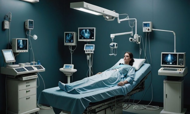 sterile, stark, snowy white room, as frigid as a morgue, a narrow gurney lay quietly, center stage, for its star. harsh beeps bounce off the crisp, cemented walls.