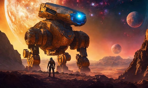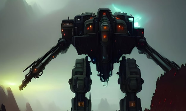 4-H-N was watching with Professor Grindo from a vantage-point which commanded the whole of the assault course’s open-air span. The stands on either side were fast filling up with Mini-Flash membership, while Prof via his remote control made the last checks on a huge moving form far off in the distance towards the finish-line. The Kral-it-Gor Memorial Security Lodge, in its robot mode, swung and held satisfactorily through the motions of final guardian.
