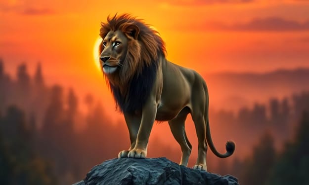 He walks with grace, a shadow of might His golden mane burning soft in the light Through deepest woods, he owns the night
