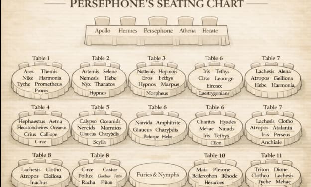 Whiskey tango foxtrot. Would you look at the seating chart my brother just handed me? It was a nightmare worthy of Phobetor and Phantasos. I swatted him with it then told him he could seat the ladies. That should fix his little red chariot but good. “And tell Aphrodite to dress for dinner. I won’t have her at my table in cut offs and a tube top.” I noticed Hermes glancing at the chart. “Any table.” If there’s a loophole, he’ll find it. If there isn’t, he’ll make one.
