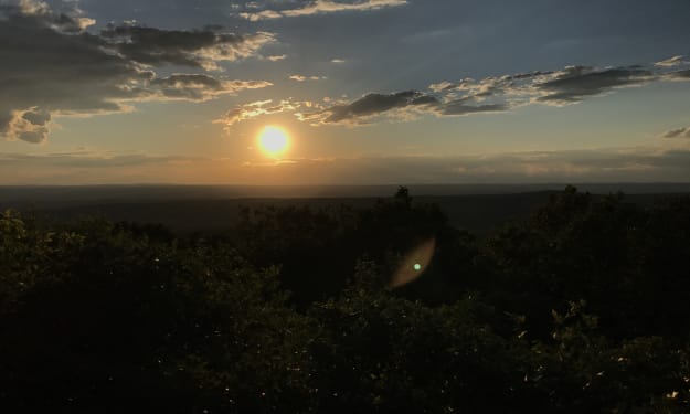 Sunset You begged me to stay with you while we watched the sunset into the trees, leaving the sky to go dark. You held me so tightly I could not move, and kissed me as if you would die if you were not tasting me.