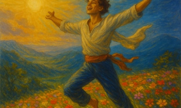 ...A melody rests gently upon my lips, My steps dance to a wild, carefree script. A sparkle like sunrise glows in my eyes, And even the wind hums my tune as it flies.