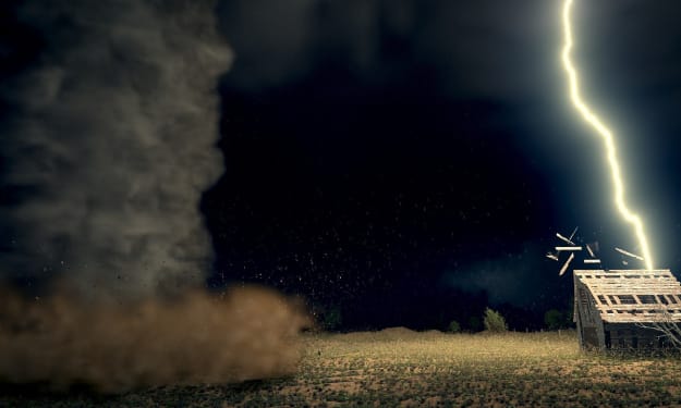 Tyler was driving his Black Ford Raptor Truck, unaware he was heading straight for the eye of storm Lucas. At least, Until the weather got so bad He had to stop, he had no choice. He had not expected to get caught up in it to this degree and he was starting to panic. He hopped out of the truck, and looked upwards at the grey and black churning sky. Planks of wood and debris were flying through the air missing him by feet, the storm was getting closer, and fast. Animals were running for cover and not a single person was in sight. This can't be good he thought, it was too late, Storm Lucas was upon him, suddenly with a almighty SMACK, a big metal barrel came smashing down onto the hood of his truck, making Tyler loose his balance in shock, he stumbled backwards landing on his behind. He stood up and shook it off, Opening the rear door to his beloved truck he grabbed his backpack, slamming the door and turning away from his truck for what he hopes will not be the last time. He takes a big breath and looks around for a clue as to what he should do next. He felt like he could literally feel the full force of this storm growing closer to him.