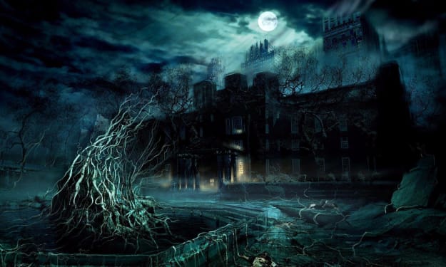 The moon shone brightly, casting a silvery glow upon the deserted mansion nestled deep within the shadowy woods. The air was thick with an eerie stillness, broken only by the distant hoot of an owl and the rustle of leaves. It was a place where secrets whispered through the halls, and the walls held stories that begged to be told.
