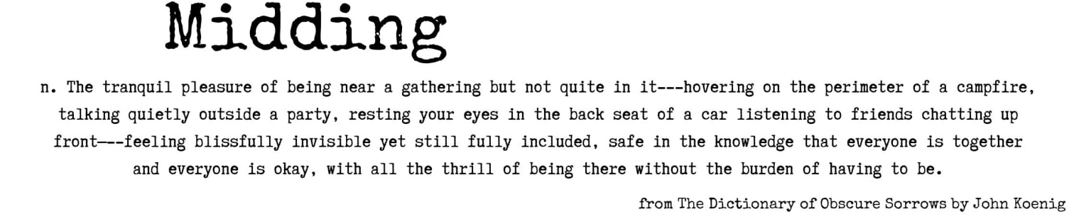 I’ve been reading John Koenig’s Dictionary of Obscure Sorrows. I think it may come to be one of my favorite and most-revisited books of all time. It has given me a new lexicon for life, which has somehow been a balm for the soul; a reminder that my complicated emotions are not unique to me and that we – humanity – are all in this thing together, holding on for dear life as best we can.