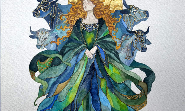 Introduction This is my fourth piece inspired by Justine G. Cappelli's gorgeous artwork. Medb is pronounced "Maeve" (/meɪv/ or MAY-v). This ancient Irish name, often associated with the mythological Queen of Connacht, derives from Old Irish and corresponds to modern Irish spellings like Méabh or Meadhbh. It is commonly understood to mean "she who intoxicates" or "meadow".