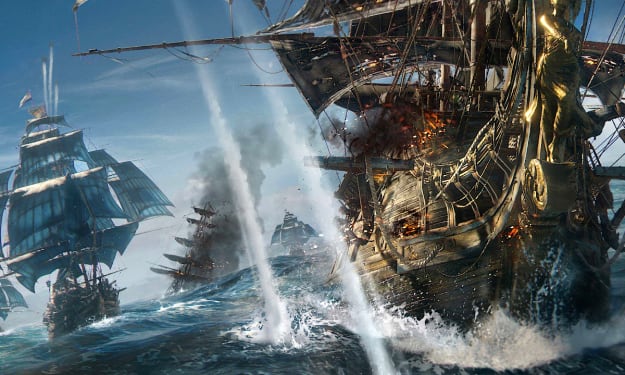 “Captain? We’re losing the wind, shall we do another pass, or turn about? The H.M.S. Her Majesty rolled across the afternoon waves with its captain standing by her first mate's side at the helm. Her eyes tracked the smoke billowing up from the decks of the ship across the bow, its rigging falling from a charred and shattered main mast, the fires slowly spreading to the powder room below. Two days and a night's hunt had all led to this moment. A moment where Captain Diane Theed had won the day against these pirates in ruthless fashion.