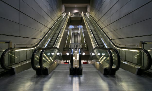 An escalator, a moving stair, A journey, up and down, with care. With each step, a rise or fall, A path, to reach, the highest hall.