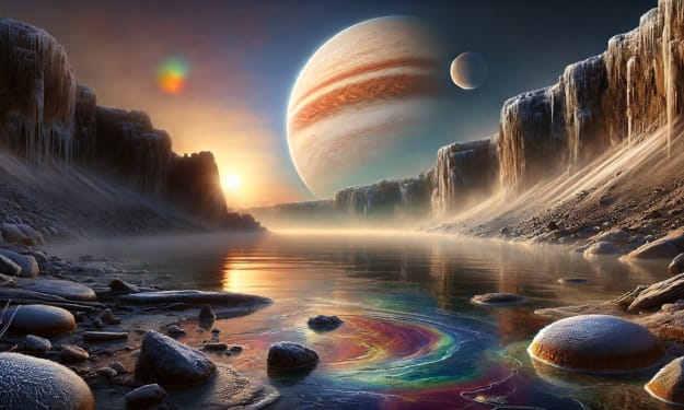 Finally, the sun emerged from behind the gas giant planet Titania, and Lysa adjusted her filter mask tighter. The summer solstice had officially arrived on Titania’s moon, Faerrus, and back at the colony they would be celebrating. Celebrating for her meant testing out a new theory about this moon’s ocean. She pulled her brown hair back into a short ponytail, then shoved her boat off the mineral encrusted shore into the bay with a final crunch.