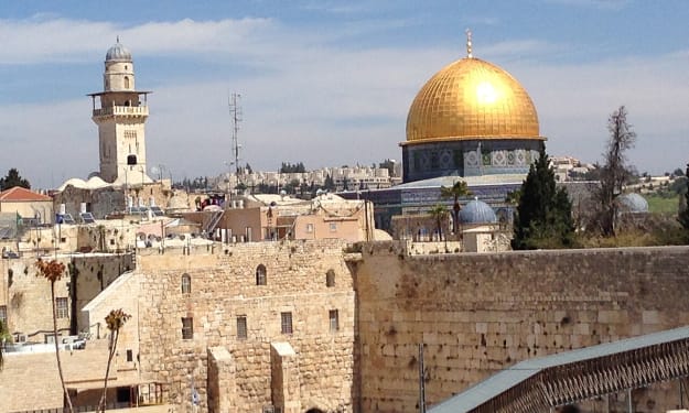 My visit to Israel in the 1990s felt like a homecoming. Don’t ask me why. A quick tour of Jerusalem took in many historic and religious sites. Not least the excavations beside the Western (or Wailing) Wall. Here, becloaked scholars read ancient Hebrew scrolls, praying with their voices, hearts, minds and bodies. Here, Roman street divides modern office and apartment blocks. Here, east meets west, Jew lives alongside Arab. Here the most holy of Christian monuments has a church that is bisected by a line cutting through two walls, floor, ceiling and alter. One side Catholic, the other Greek Orthodox.