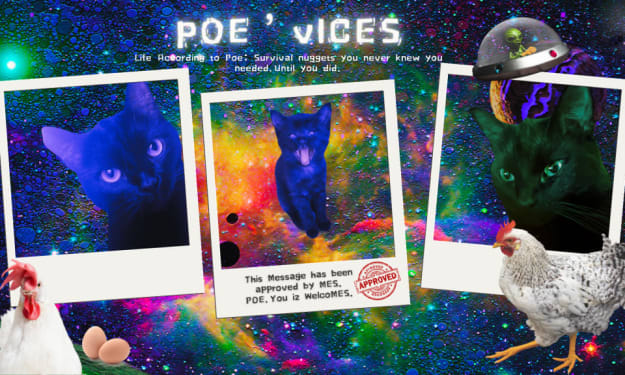 Introducing Poe ‘Vices: Life Advice You Definitely Didn’t Ask For or Need. From chaos gremlin to cosmic counsellor, Poe (The infinite, scream-Beam) is now solving your deepest problems with her signature style: shouting, biting things, and chicken, obvs. Fools.