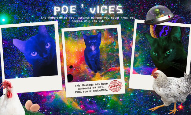 Introducing Poe ‘Vices: Life Advice You Definitely Didn’t Ask For or need. From chaos gremlin to cosmic counsellor, Poe (The infinite, scream-Beam) is now solving your deepest problems with her signature style: shouting, biting things, and chicken, obvs. Fools.