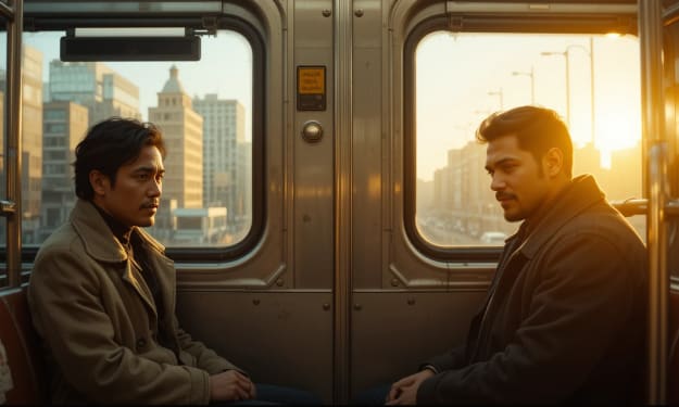 The Stranger on the Train It was one of those evenings when the city felt like it was exhaling — not quite asleep, not fully alive. The 6:47 PM train groaned into the station just as I reached the platform, breathless, coat flapping behind me like a half-forgotten wing. I slid into an empty seat, grateful to have caught it. Another day survived.