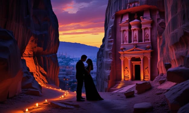 The Flame of a Thousand Suns A Love Story Forged in the Heart of the Middle East In the ancient sands of Petra, where rose-red cliffs held the secrets of the Nabataeans, a love was born that would burn through the ages. It was 200 BCE, and Aisha, a caravan trader’s daughter, moved through the Siq with the grace of a gazelle, her eyes like polished obsidian catching the torchlight. Tariq, a sculptor carving gods into the canyon walls, saw her and felt his chisel still, his heart struck by a vision more divine than any he could craft.