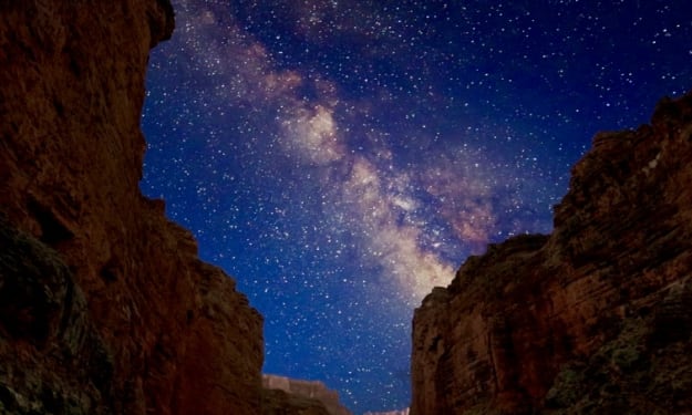 The deafening of Nature’s silence gently seeks thy soul. As I gaze upon this stellar canvas of which I must behold. A vision of which elicits tears as I as escape the grasp of slumber. A river flows between these Sandstone walls with the sound of distant thunder.