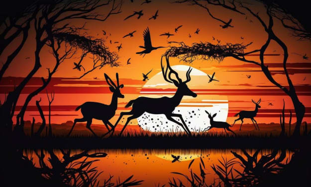 Once upon a time, in a dense forest, there lived a herd of deer. The herd consisted of several families of deer who roamed the forest, feeding on the lush green vegetation and drinking water from the nearby streams. The forest was their home, and they had lived there for generations. They were happy and content, and life was good.