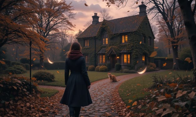 A Woman Standing Alone in Front of a House with Autumn Leaves The woman stood alone at the edge of the gravel path, her boots dusted with golden and rust-colored leaves. A brisk breeze stirred the canopy above, sending a fresh flurry spiraling down around her, as if the forest itself whispered a welcome—or a warning.