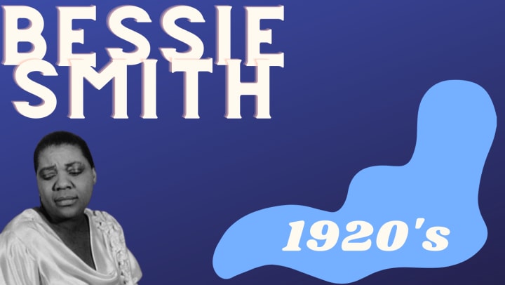 Bessie Smith, also known as The Empress of Blues, was born in Tennessee in the late 1800s. Both her parents and older brother died when she was still a child resulting in a difficult upbringing raised by her older sister Viola. To earn money, Bessie and her siblings busked (played music on the street) on the sidewalks of Chattanooga. There Bessie with her guitar and powerful voice began her musical career. Bessie was a hit despite some record producers finding her too 'rough', they didn't think a Black woman who stopped singing to spit could be such a success. But her name is still recognized today, nearly a century later.