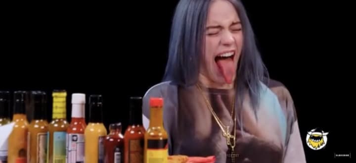 6. Billie grew up vegetarian , but converted to a vegan lifestyle in 2014. However that didn’t stop her From being featured on an episode of “Hot Ones” ( a spicy wing eating show) eating plant based nuggets.