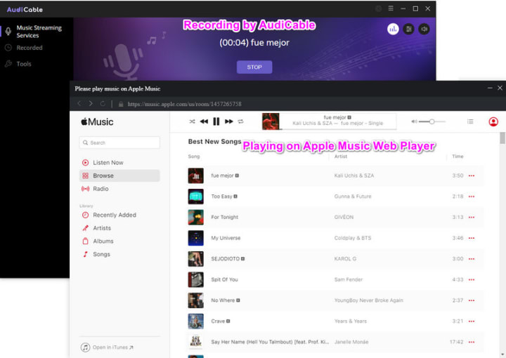 Choose songs or playlists you want to download from Apple Music, then start playing. AudiCable will record Apple Music simultaneously. Meanwhile, songs will be converted to the formats you've chosen in the previous step.