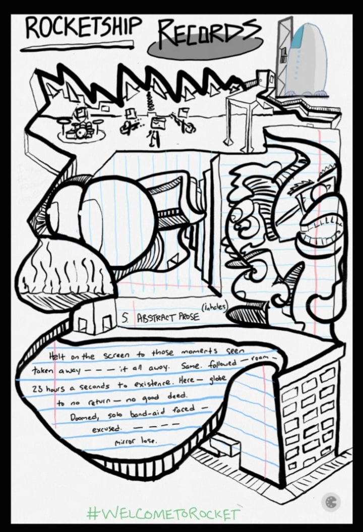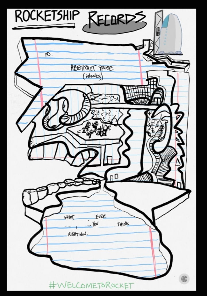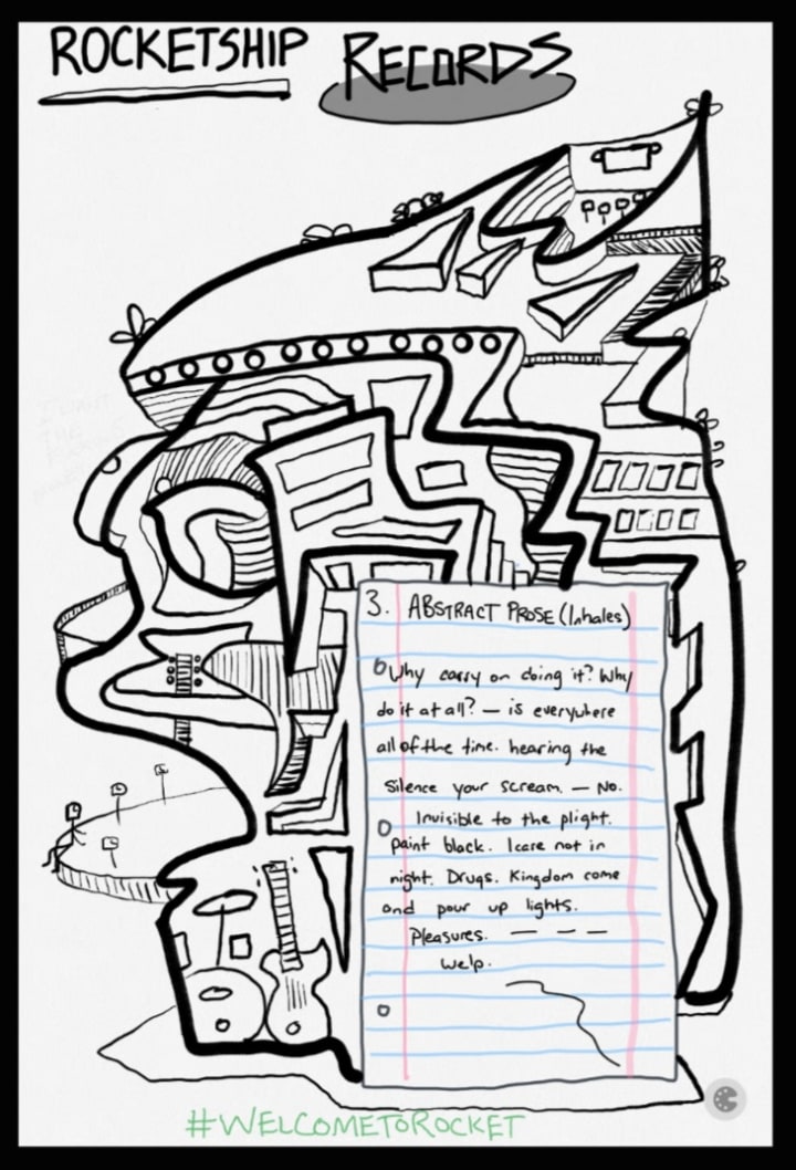 Properly dubbed, "Solo Flights to Space", our CREW collected notes from around our great 48th & 4th campus of these various sessions from our talents, their abstract prose, abstract poems, anything for a playback to have on this most inventive occasion.