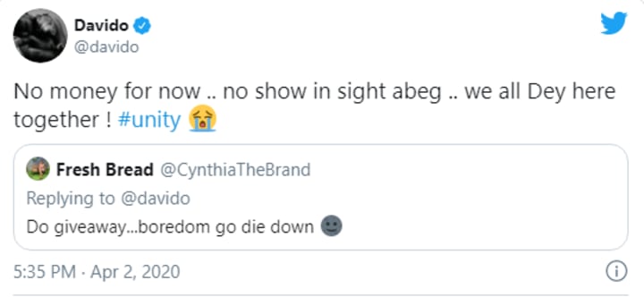 When a fan asked him to do a giveaway, the Nigerian singer responded: