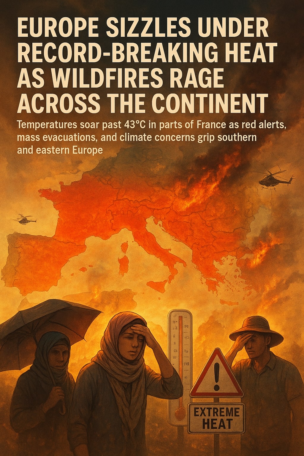 Temperatures soar past 43 °C in parts of France as red alerts, mass evacuations, and climate concerns grip southern and eastern Europe