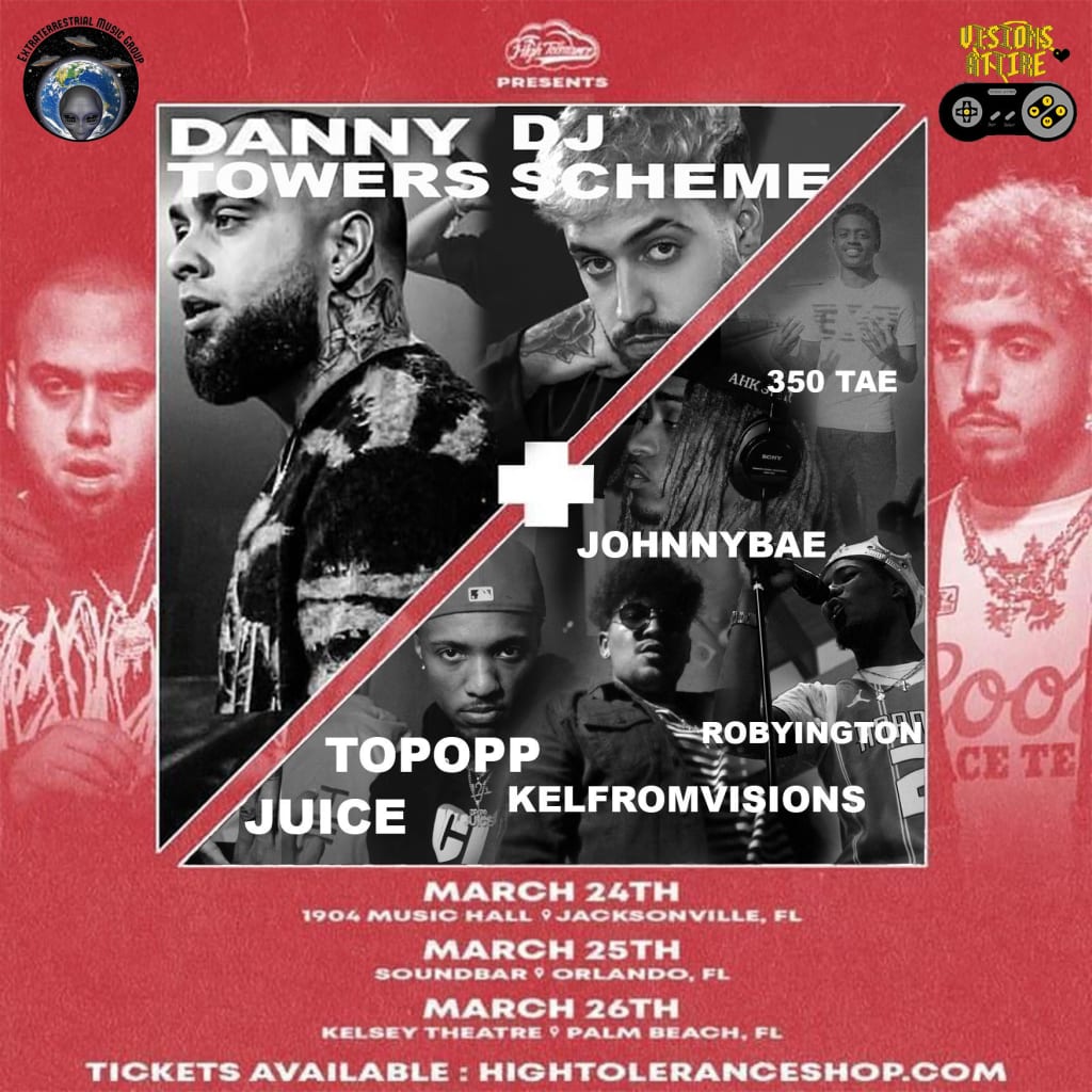 Popularly known for the viral song “How You Feel?” With Lil Yachty and Ski Mask the Slump God, Danny Towers and Dj scheme are growing at an incredible rate. The song was popularized by one among the foremost used social media apps, TikTok. These two content creators that are from Florida came together and scheduled a tour through Florida. This 3-day tour, known as “High Tolerance Tour,” went from March 24th to March 26th. The locations were in Jacksonville at the 1904 Music Hall, Orlando at the Sound Bar 9, and in Palm Beach at the Kelsey Theatre. Despite these venues being large, the Covid-19 pandemic did not hinder or stop their fans from making an appearance and rocking out. The turnout was phenomenal, making the crowds well packed. The openers were extremely diverse, which consisted of many alternative genre infusions.
