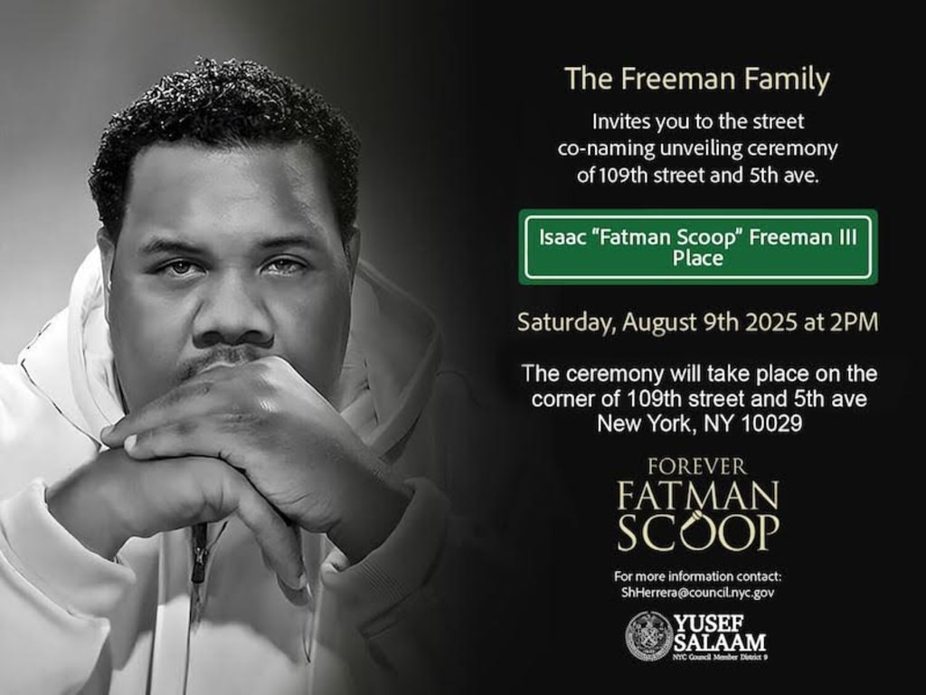 There are voices that define eras, Biggie’s effortless Brooklyn cool, Busta’s manic energy, Missy’s futuristic flow, and then there’s Fatman Scoop, the human airhorn who turned ad-libs into anthems. On August 9, Harlem will cement his legacy in concrete as 109th Street and 5th Avenue becomes “Isaac ‘Fatman Scoop’ Freeman III Place.” But this isn’t just another street co-naming. It’s the culmination of a story that’s pure New York, a kid from the projects who became the undisputed blueprint for hype men worldwide, The voice that once made stadiums tremble and block parties erupt will now echo forever through Harlem’s streets. This is a permanent tribute to the Grammy-winning hype man who left us too soon but whose impact will never fade.