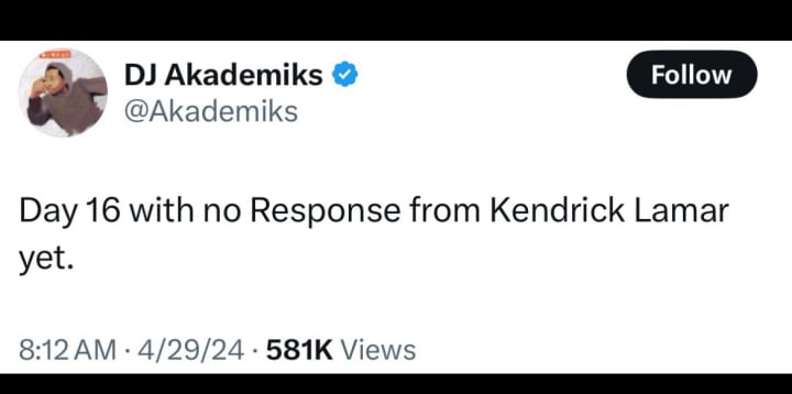 When Kendrick finally answered, he answered with flames. "Euphoria" , "6:16 in LA" "Not Like Us" the #1 hit song of 2024. Each track hit harder than the last. The world felt the energy shift and suddenly Drake, the man who made an entire career out of clever bars and pop star crossover records, was on defense. That timer Akademiks was running turned into a countdown on Drake’s legacy. Hip hop saw it, the streets saw it, and no amount of streaming boosts or corporate spin could cover up what went down. Kendrick won that war, plain and simple.