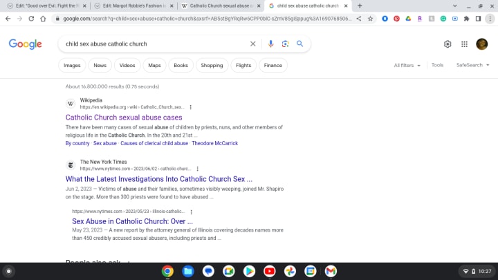 I didn't know about child sex abuse in Catholic churches until I had to google it. There were 16,800,000 results.