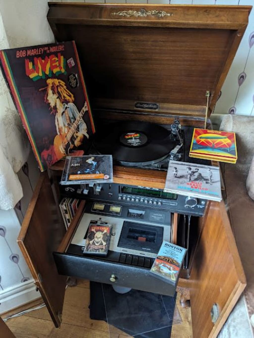The main picture shows my options for listening to music, which include radio, vinyl, cassette, CD and DVD/Blu-Ray. I also have digital copies that I listen to when walking on my phone, and I like to see artists playing live.