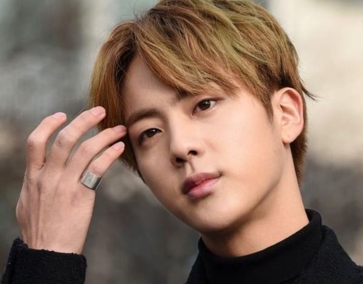 Jin is the oldest of the group. He gets called 'the mom' because he takes care of the other members. He cleans and he cooks food for them. Jin is the best cook out of all the members. He nicknamed himself Worldwide Handsome, obviously because he is very handsome. He has a habit of sending flying kisses randomly. He just wants to spread his love. He was also nicknamed Eat Jin because of his love for food. He even has his own series that consists of him just eating. Fans nicknamed him "Car door guy" because when he got out of the car, he shocked everyone with his visuals. Yeah. He's that handsome. Also, when BTS attended the Billboard Music Awards, he was nicknamed "third guy from the left" because he stood out so much. Jin has a habit of blinking his eyes a lot. Jin is well known for his dad jokes. He has at least 500 in his head at all times.