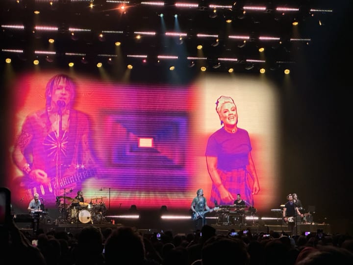 One of the songs played was a duet with Pink and it was fantastic. Of course Pink wasn’t there in the centre with us but she was projected onto the screen at the back of the stage. It felt like she was with us live.