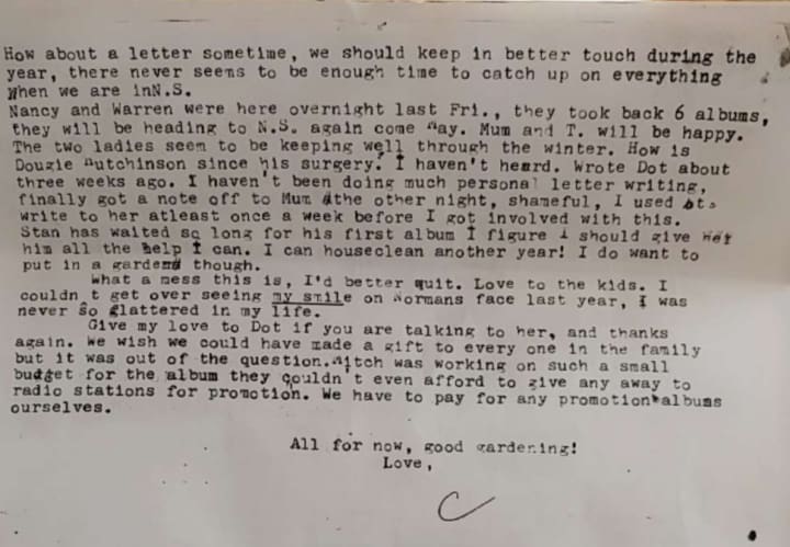 I was lucky enough to get a sneak-peek at life during Stan Rogers' busiest time in his career - in the form of a letter from his mother, Valerie "Chick" Bushell (Rogers) to her brother and sister-in-law Norman "Bim" Bushell and Geraldine "Gerry" (Armsworthy) Bushell, respectfully.