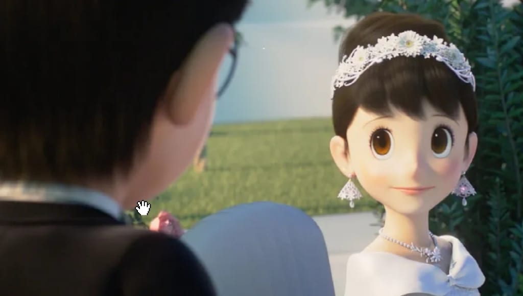 The wedding didn’t go well. The adult Nobita escaped because of fear. He took the time of Jingdang and fled to the past. He saw his mother, and also saw the 10-year-old Nobita, and exchanged souls with the adult Nobita. A series of time and Through the experience, Daxiong realized that getting married is not only his milestone (it was my idea, the plot should not be the reason), but also the wish of many people, including Xiu. In the end, it was also a tearful scene. In fact, it was just plain. Nobita looked back point by point and said something touching.